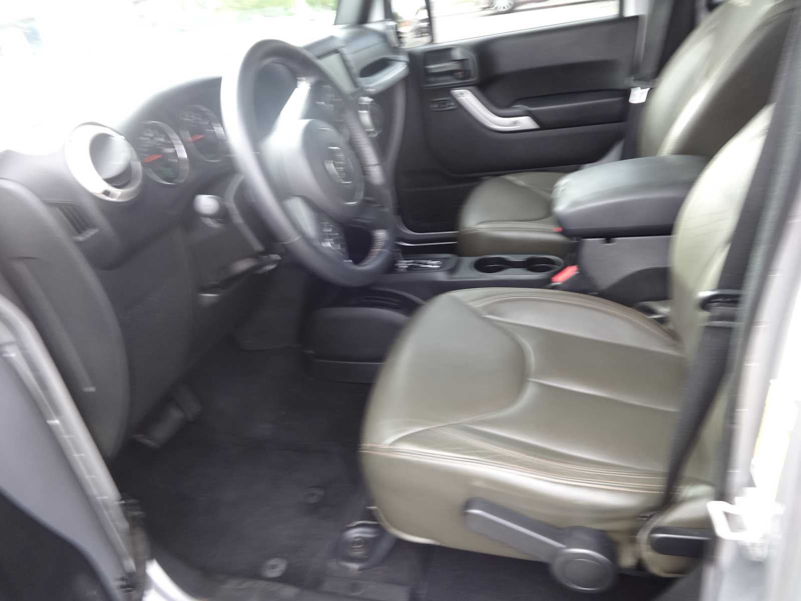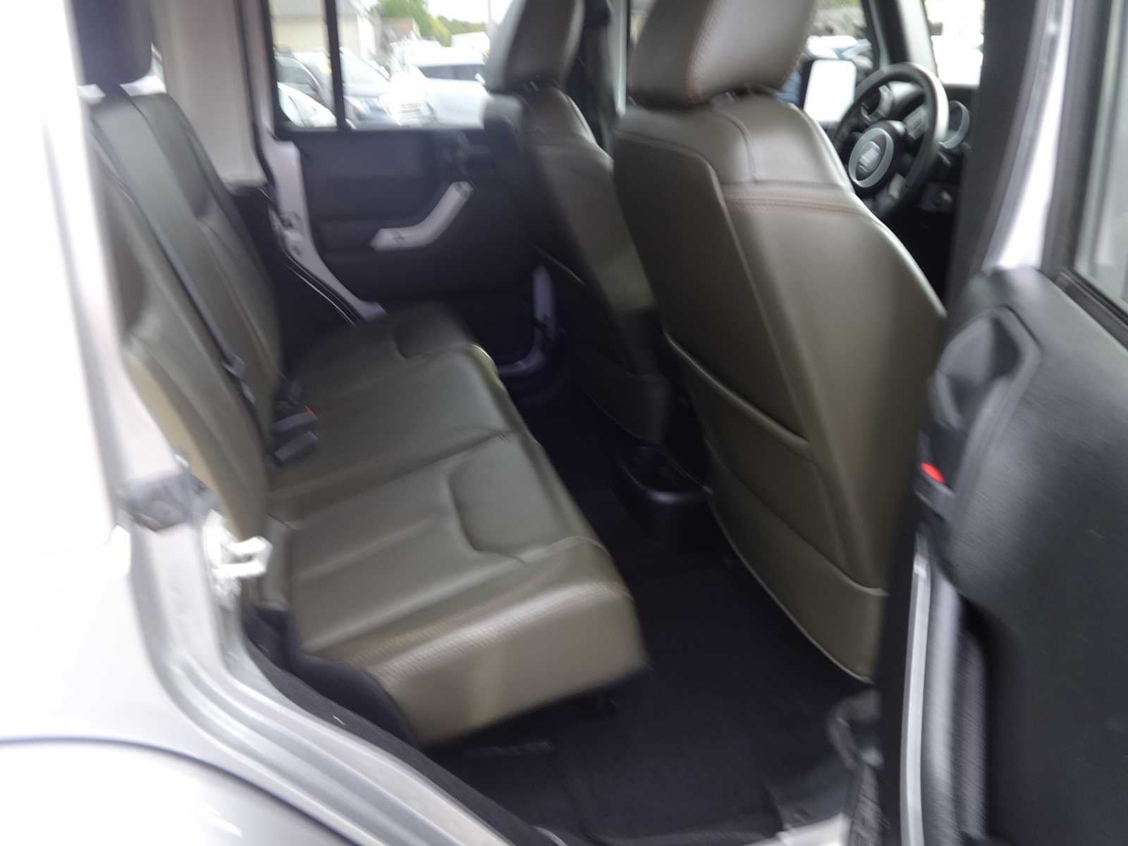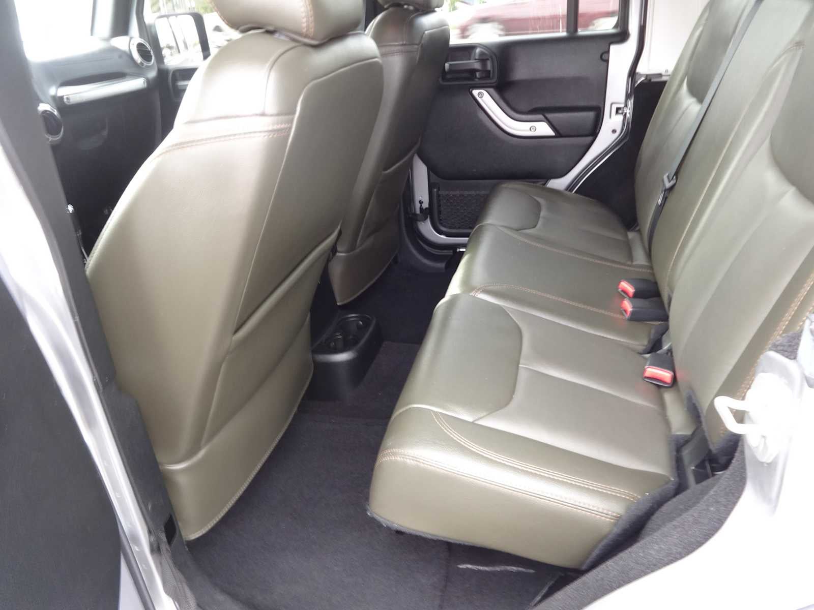 BODY COLOR 3-PIECE HARD TOP If ordering without AEM (Dual Top Group), the black soft top will not be included, Freedom Panel Storage Bag, Rear Window Defroster, Rear Window Wiper/Washer, TRANSMISSION: 5-SPEED AUTOMATIC (W5A580) Tip Start, Hill Descent Control, DARK OLIVE/BLACK, LEATHER TRIMMED BUCKET SEATS Front Seat Back Map Pockets, Driver Height Adjuster Seat, Heated Front Seats, RADIO: 430 NAV 6.5 Touchscreen Display, Remote USB Port, 40GB Hard Drive w/28GB Available, GPS Navigation, SiriusXM Travel Link, ALPINE 9-SPEAKER W/ALL WEATHER SUBWOOFER Amplified 552W, MAX TOW PACKAGE Class II Receiver Hitch, 3.73 Rear Axle Ratio, Trailer Tow w/4-Pin Connector Wiring, CONNECTIVITY GROUP Vehicle Information Center, Remote USB Port, Uconnect Voice Command w/Bluetooth®, Tire Pressure Monitoring Display, ANTI-SPIN DIFFERENTIAL REAR AXLE, REMOTE START SYSTEM, ENGINE: 3.6L V6 24V VVT (STD). Jeep Sahara with Billet Silver Metallic Clearcoat exterior and Dark Olive/Black interior features a V6 Cylinder Engine with 285 HP at 6400 RPM*. Check Brakes 50% or Better, Checks Belts No Repair Needed, Mechanically Inspected and Safety Inspected